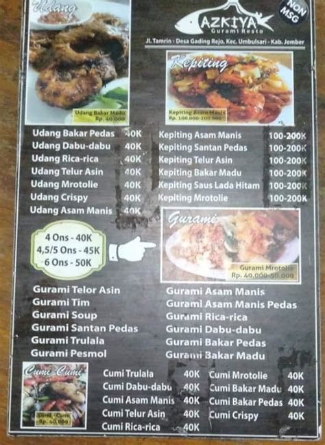 Menu merupakan salah satu komponen penting dalam sebuah restoran. Bagi Azkiya Resto, menu memegang peranan penting dalam menarik pelanggan dan mempertahankan loyalitas mereka.