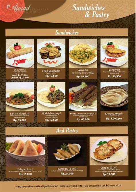 - Menu Ajwad Resto memperhatikan alergen dan menyediakan menu musiman dan menu khusus untuk memenuhi kebutuhan pelanggan yang berbeda.