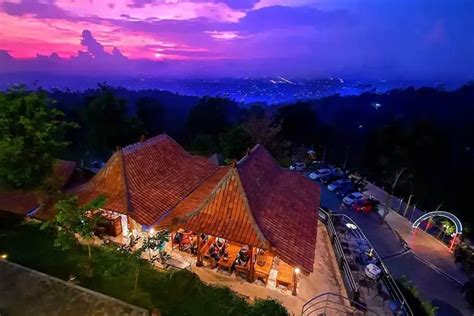 Lokasi resto watu langit yang strategis memudahkan akses dan memberikan pemandangan kota yang indah.